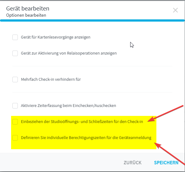In dem geöffneten Popup auf die zweite Seite navigieren. Je nach gewünschter Funktion entweder die Studioöffnungszeiten mit einbeziehen oder Individuelle Zeiten definieren.