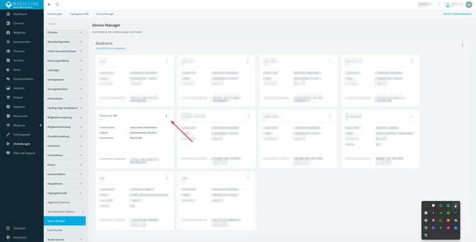 Gehe in der Magicline zu Einstellungen > Zugangskontrolle > Device-Manager.